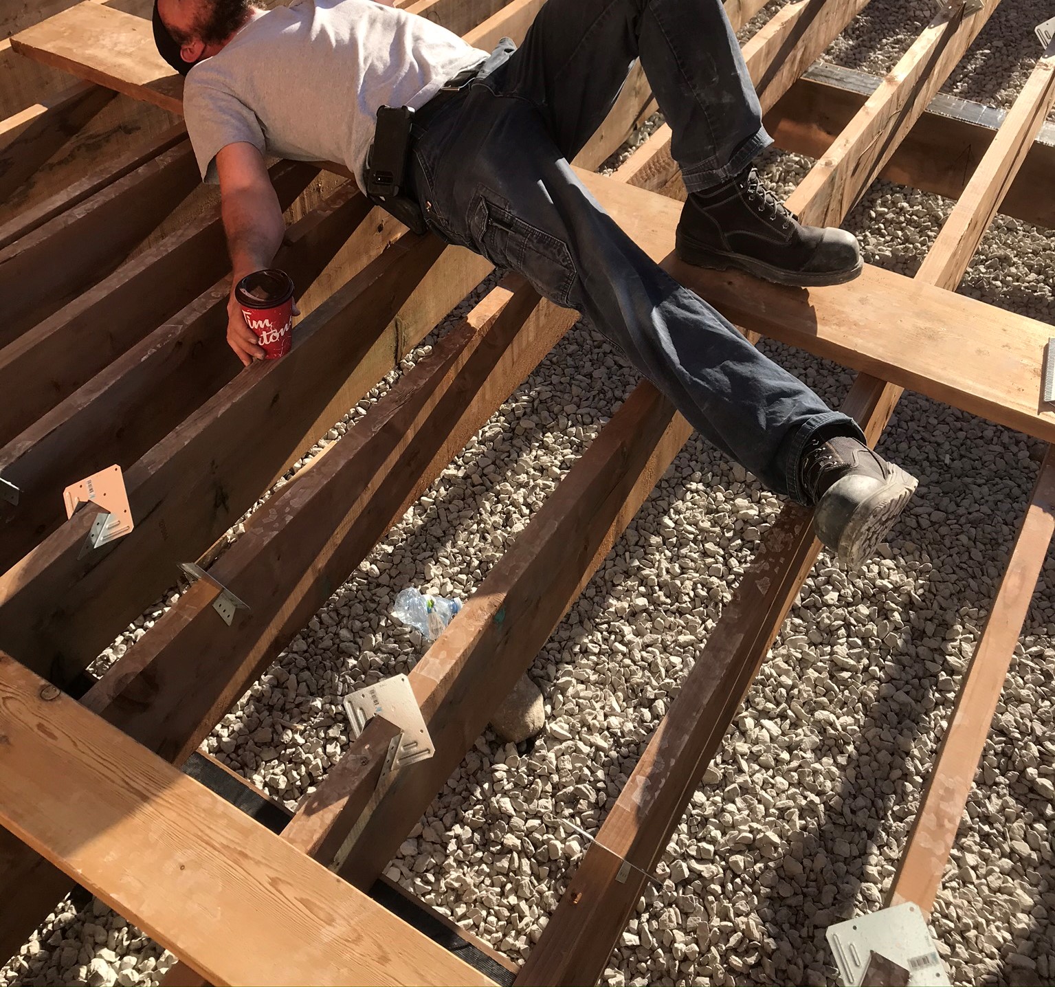 - Attach all joists with 1 hurricane tie on each beam to prevent uplift