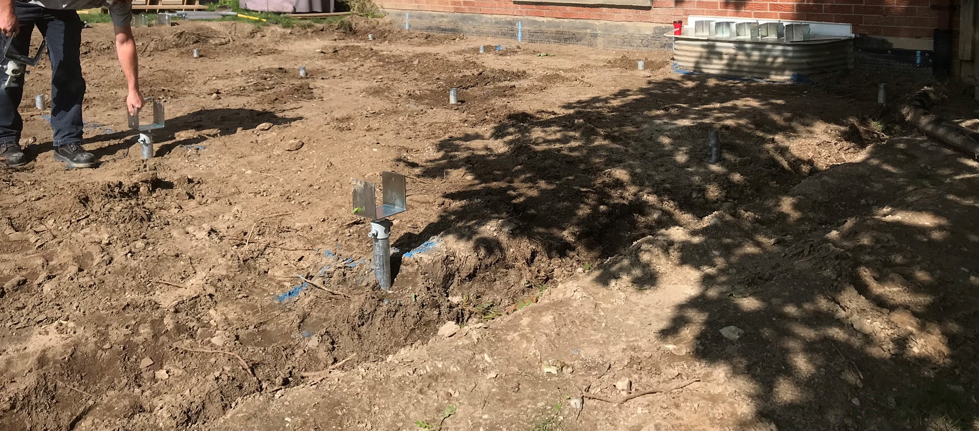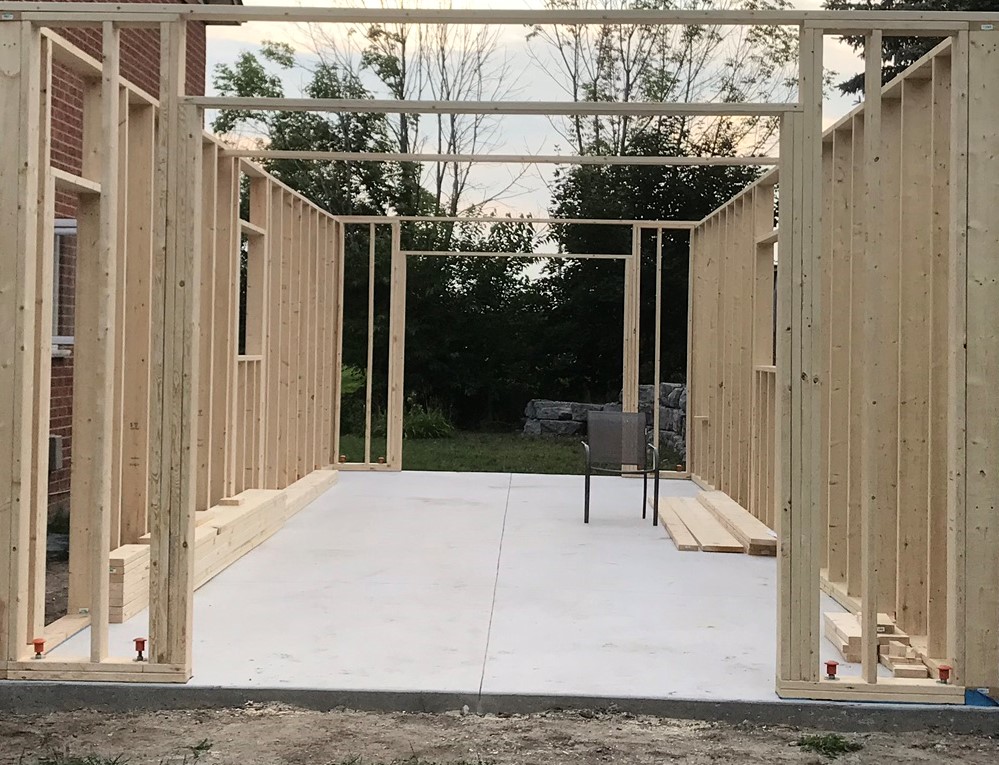 - We called in a Helical Pile installer to provide us with a stable foundation not attached to the house and had the lumber delivered that morning