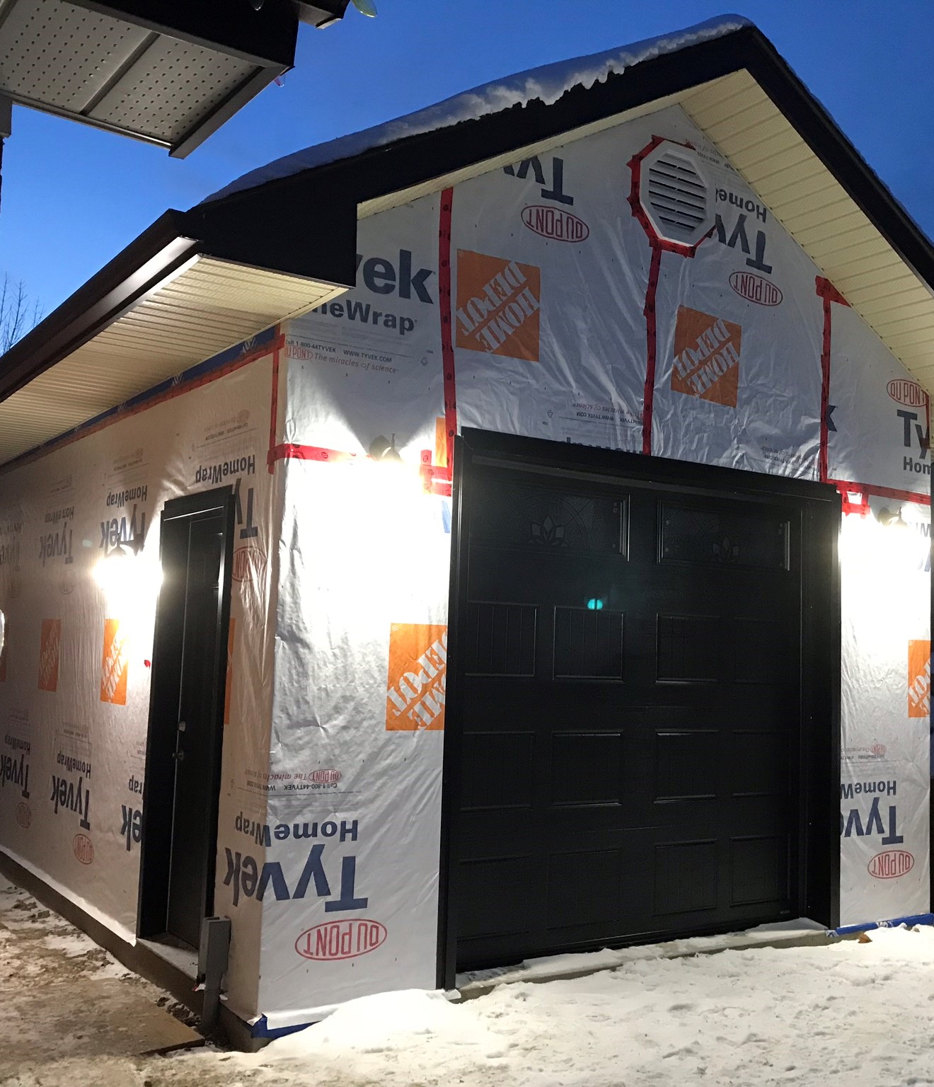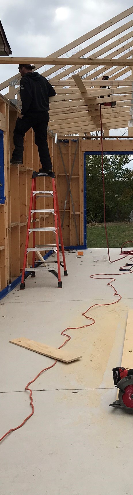 - Install soffits, fascia, eavestrough and downspouts