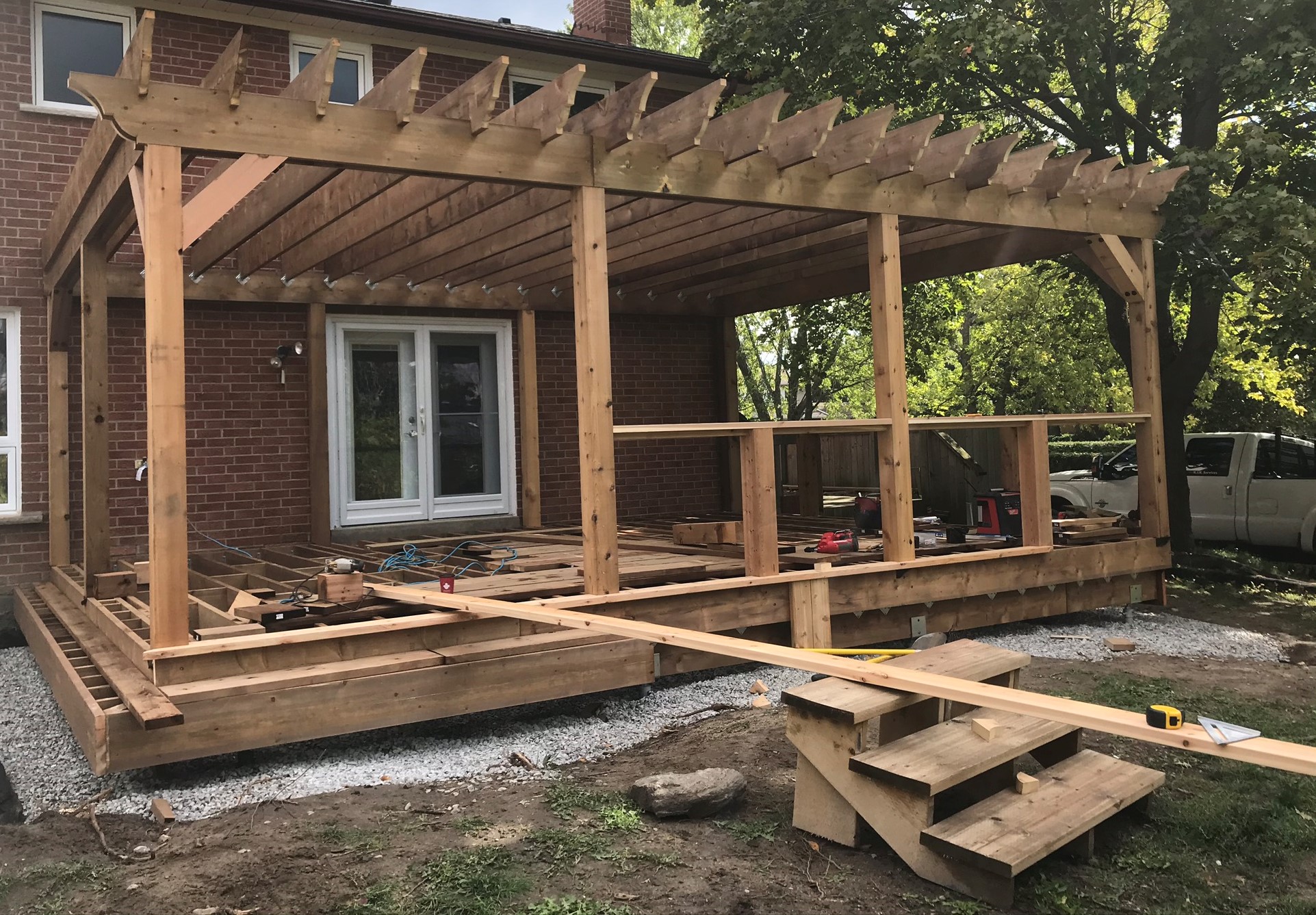 - Consult the homeowner on design of pergola detail (ends). Once approved we made a jig to ensure they would all be identical
